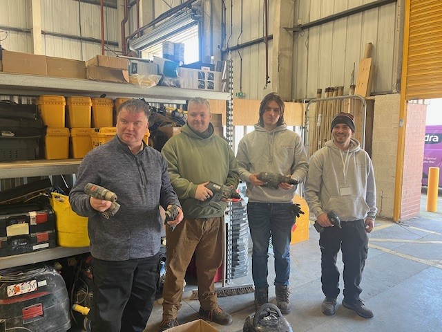 Yn dilyn cais llwyddiannus cafodd Hefin, Gwyndaf a Gethin fynd gyda un o’n staff, Joss i dderbyn offer fel rhodd gan gwmni ADRA.